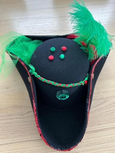 schwarzer Dreispitz mit Dekoelementen zum Selberbasteln.