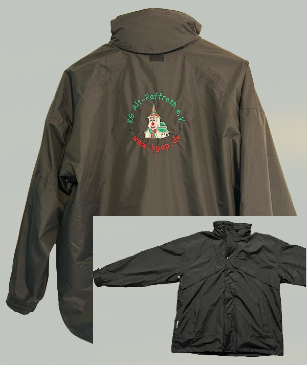 Regenjacke mit großer Stickerei KG-Logo Rücken und Name Brust.